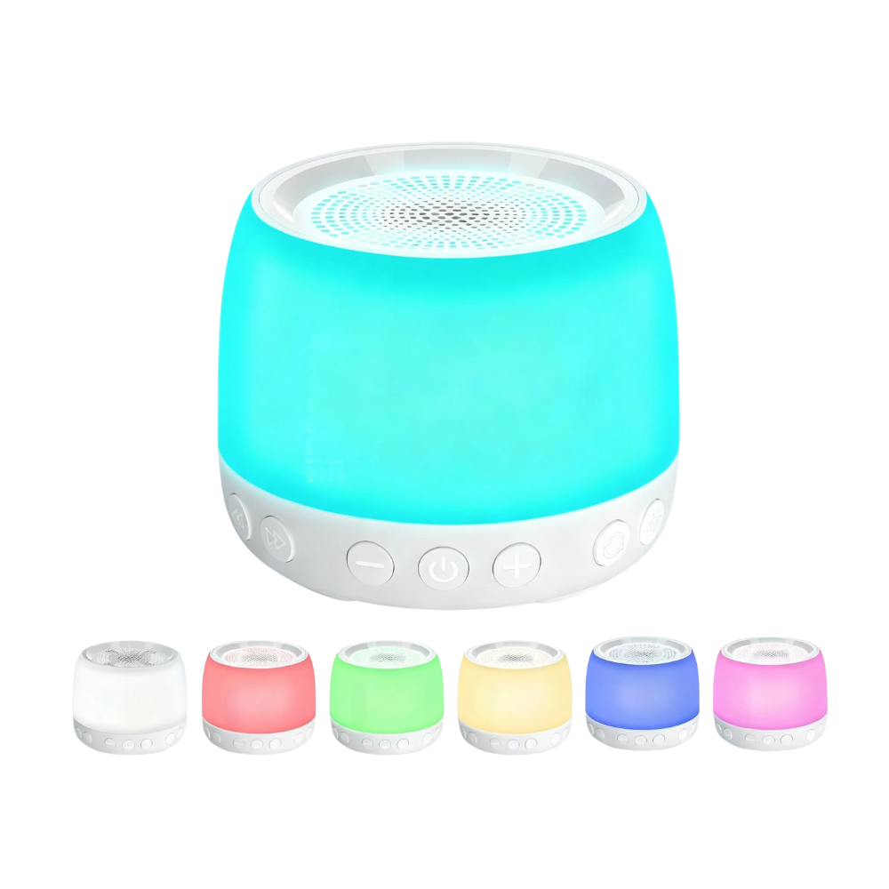 Lunora uyku ses cihazı; yağmur, dalga, orman, kuş ve ninni gibi doğal tonları beyaz gürültüyle birleştirerek dış sesleri nazikçe maskeler, yanında yumuşak gece lambasıyla sıcak bir uyku alanı oluşturur.